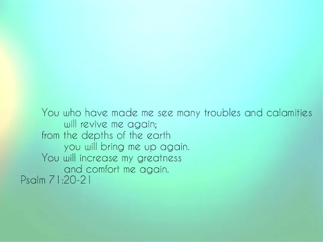 Psalm 7120-21 NKJV The commentary in my Bible titles Psalm 71 A Senior Citizens Prayer. You shall increase my greatness and comfort me on every side. 20 Though you have made me see troubles many and bitter you will restore my life again.